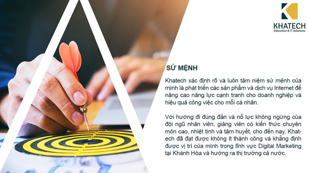 KHATECH là trung tâm đầu tiên đào tạo Marketing Online tại Nha Trang, Khánh Hòa. Chúng tôi nhận thấy rằng Marketing Online là một xu hướng tất yếu để phát triển khách hàng và thương hiệu công ty bởi những ưu điểm vượt trội so với Marketing truyền thống. Chúng tôi mong muốn các doanh nghiệp sử dụng và phát huy sự hiệu quả của Website để kinh doanh trực tuyến.